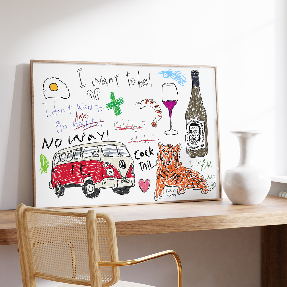 정신없이 복잡한 디자인들입니다. 어린이의 그림체를 모티브로 하여 디자인되었고, 지금 우리 머릿속에 있는것들을 동심의 관점에서 풀어내보고자 기획하여 디자인된 라인입니다.